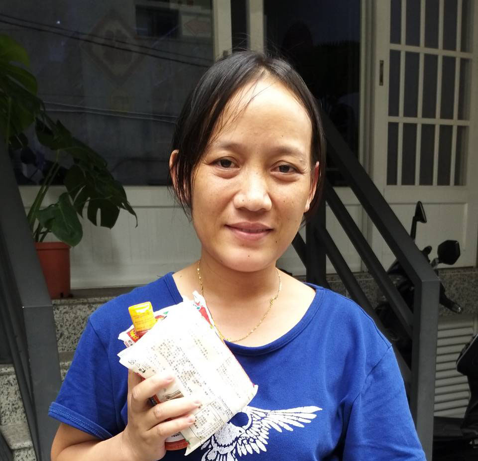 高雄苓雅區葉老闆家外勞卡司妮拉,表現良好公司翻譯送印尼食品獎勵